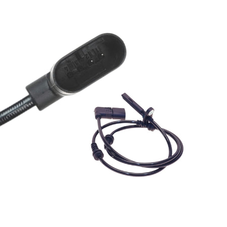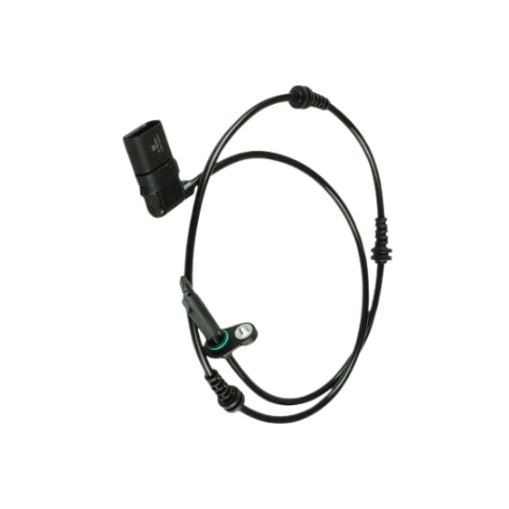 - What it is: A front axle wheel speed (ABS) sensor — an active magnetic/pickup sensor that reads the tone/ring on the wheel hub to provide wheel speed input to the ABS/ESP and engine/gearbox systems. Typically sold as left (LH) or right (RH) front sensor; connector and wiring harness included on most aftermarket units.